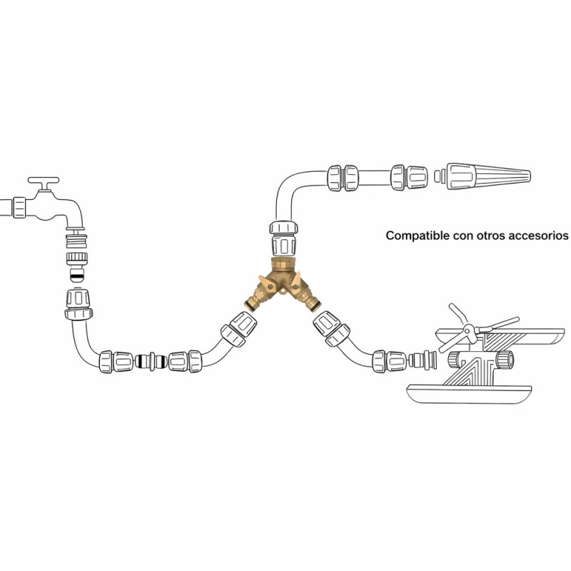 - Medida: 3/4" macho. con 2 salidas de enchufe rapido.