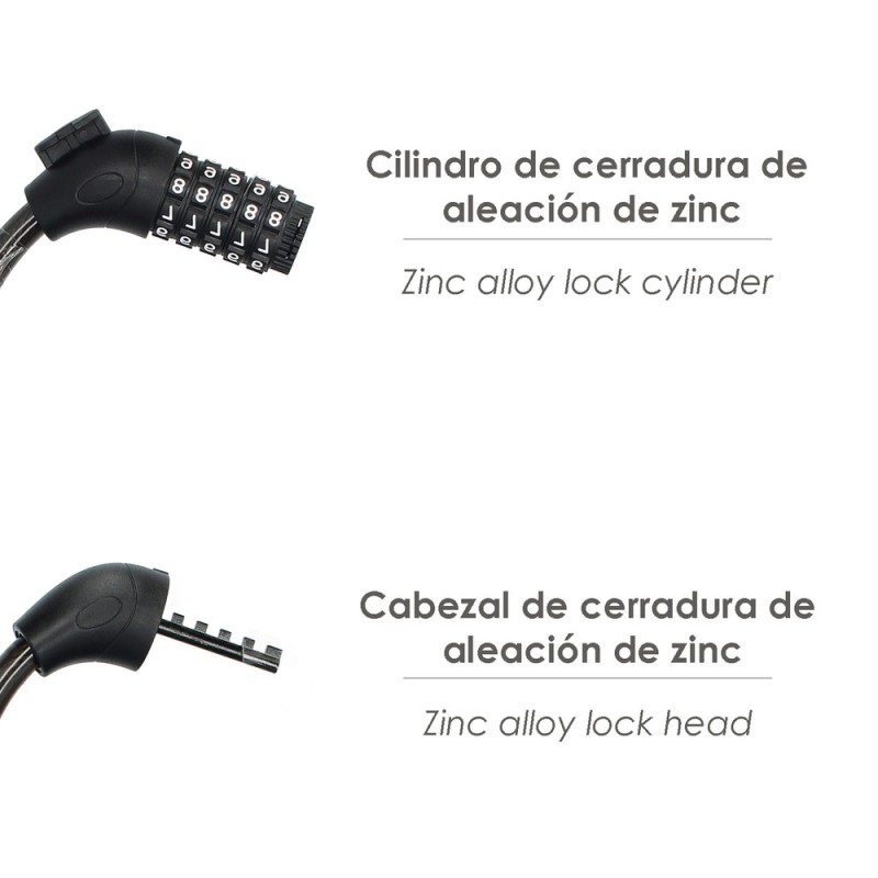 - Tambien conocido como candado de combinación, candado de cable con combinación, candado de cadena, candado para bicicleta.