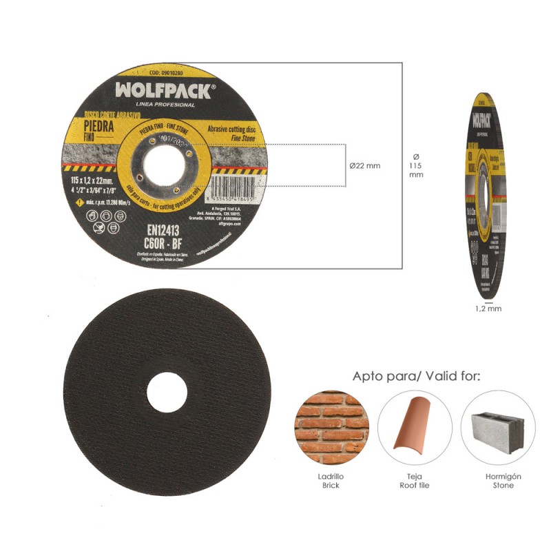 Disco Corte Abrasivo Piedra Fino Plus Ø 115 x Ø 22 mm. Espesor 1,2 mm.