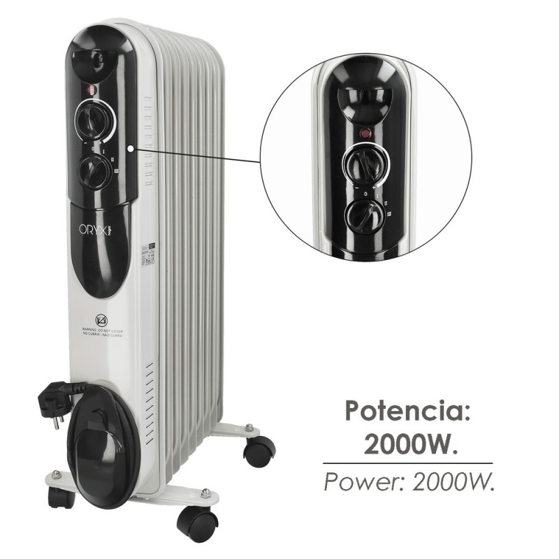 Radiador de aceite con una potencia de 2000w y 9 elementos.