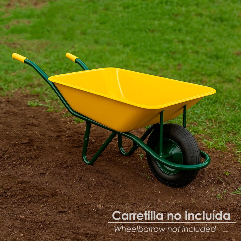 - Su diseño especial la convierte en la elección perfecta para carretillas de obra, aportando estabilidad y fiabilidad en cada movimiento.