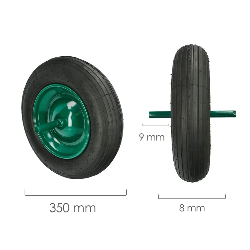 Rueda para carretilla de obra estándar de 350x8 mm de tamaño.